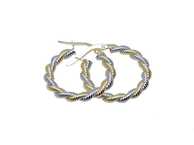 9ct Yellow and white gold round, rope twist hoop earrings measuring 22mm in diameter